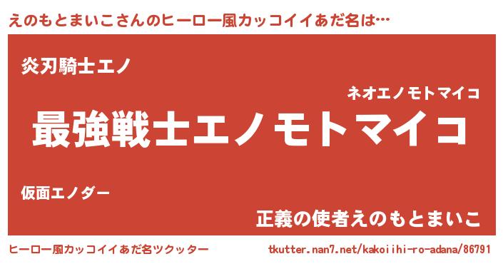 | 意味不明あだ名 | 『自称えのもとまいこ』 |