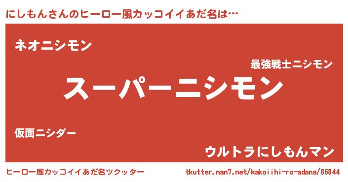 | 男性向けラノベタイトル風あだ名 | 『にしもんの憂鬱』 |