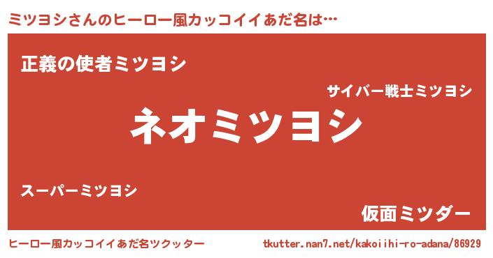 | ヘコむあだ名 | 『ミツヨシ(苦笑)』『ミツにゅー』 |