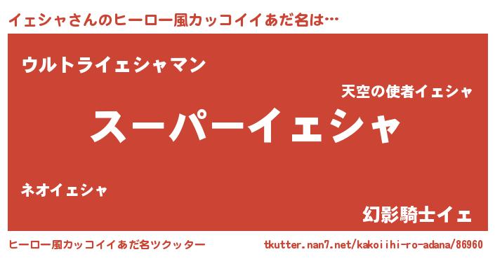 | ファンタジー風あだ名 | 『イェフェル』『エターナルイェシャー』 |