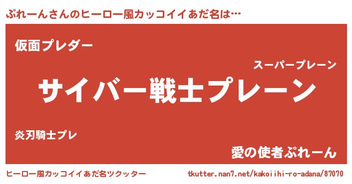 | 男性向けラノベタイトル風あだ名 | 『Re:ぷれーんから始める異世界生活』 |