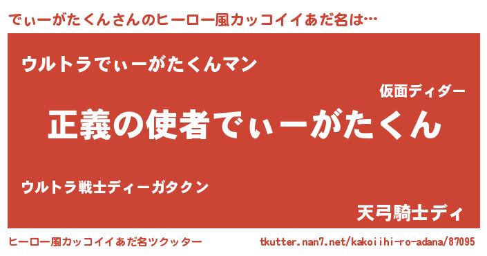 | 女子向けラノベタイトル風あだ名 | 『でぃーがたくん夫妻のなれそめ』 |