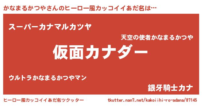 | 男性向けラノベタイトル風あだ名 | 『この素晴らしい世界にかなまるかつやを!』 |