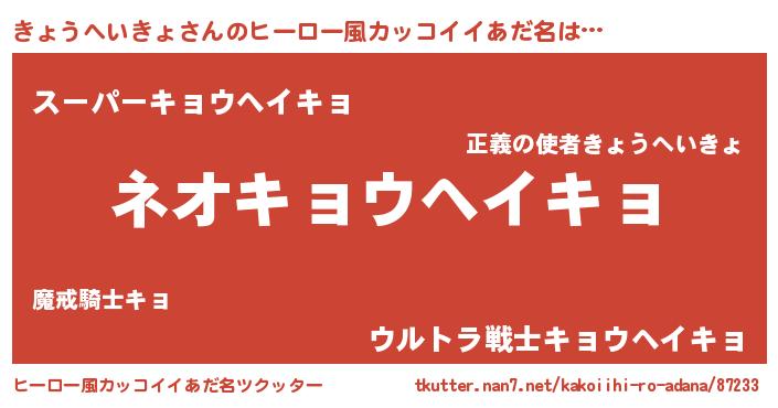 | 恥ずかしいあだ名 | 『きょちん』『プリティーきょうへいきょ』 |