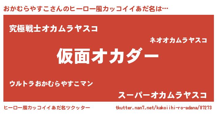 | 男性向けラノベタイトル風あだ名 | 『おかむらやすこ~年齢イコール彼女いない歴の魔法使い~』 |