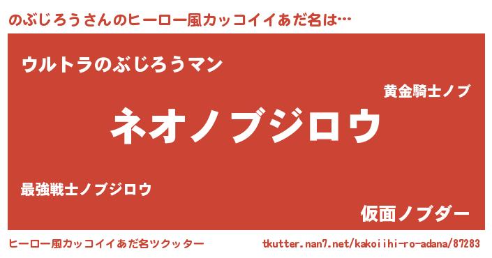| 男性向けラノベタイトル風あだ名 | 『のぶじろうに滅ぼされるだけの簡単なお仕事です』 |