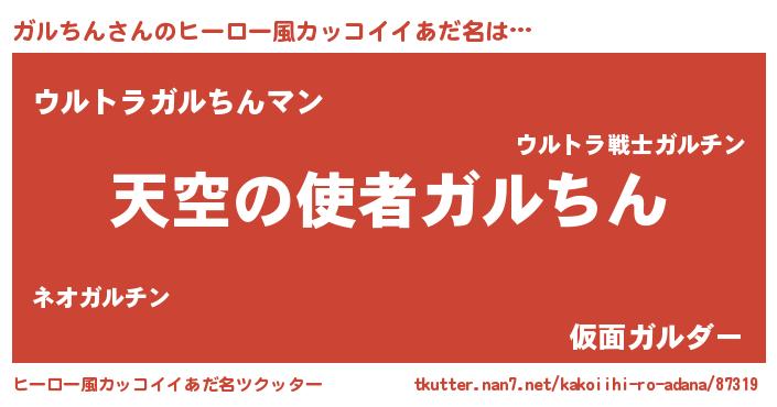| 男性向けラノベタイトル風あだ名 | 『ノーゲーム・ノーガルチン』 |