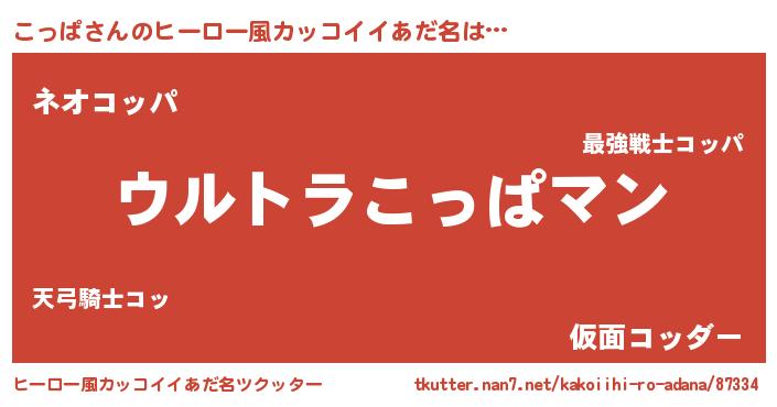 | 男性向けラノベタイトル風あだ名 | 『うちの娘の為ならば、俺はもしかしたらこっぱも倒せるかもしれない。』 |