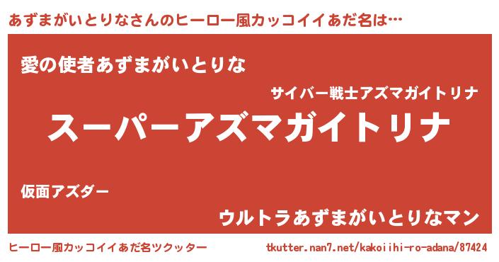 | 胡散臭い通販商品みたいなあだ名 | 『モテモテ間違いなしブレスレット…その名も「あずまがいとりな」』 |