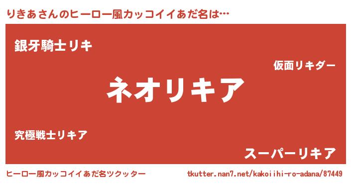 | ヘコむあだ名 | 『りきあ(爆)』『りきっ子』 |