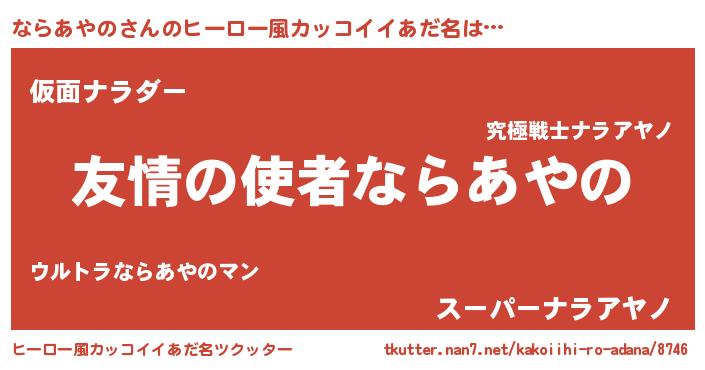 | 女子向けラノベタイトル風あだ名 | 『ならあやの恋絵巻』 |