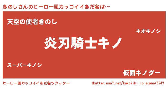 | 女子向けラノベタイトル風あだ名 | 『きのし様がみてる』『死神きのしの再婚』 |
