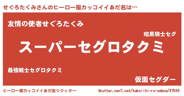 | 男性向けラノベタイトル風あだ名 | 『うちのせぐろたくみが世界を掌握している!』 |