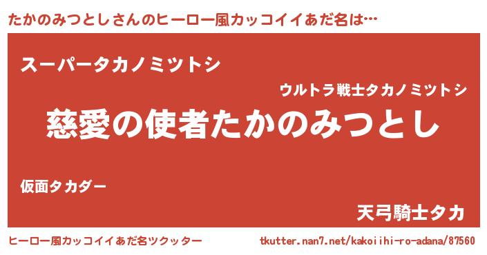 | 男性向けラノベタイトル風あだ名 | 『ノーゲーム・ノータカノミツトシ』 |