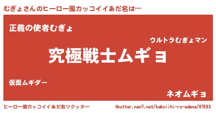 | 男性向けラノベタイトル風あだ名 | 『Re:むぎょから始める異世界生活』 |