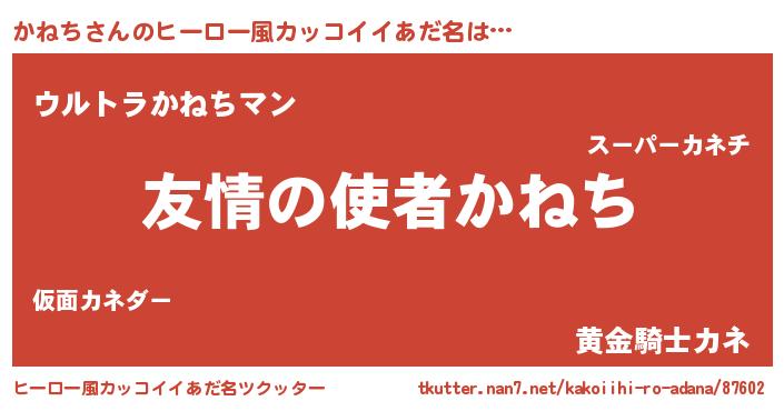 | 男性向けラノベタイトル風あだ名 | 『おまえをオタクにしてやるから、俺をかねちにしてくれ! 』 |
