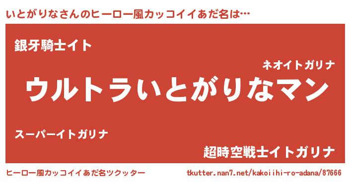 | 男性向けラノベタイトル風あだ名 | 『うちの娘の為ならば、俺はもしかしたらいとがりなも倒せるかもしれない。』 |