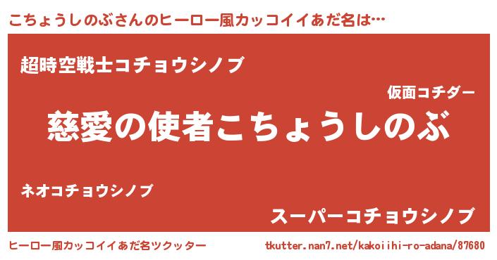 | 女子向けラノベタイトル風あだ名 | 『こちょうしのぶの玉の輿計画!』 |