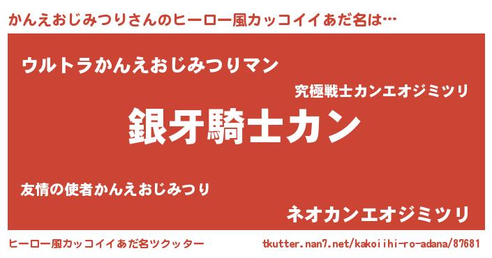 | 男性向けラノベタイトル風あだ名 | 『かんえおじみつりの嫁は女の子じゃないと思った?』 |