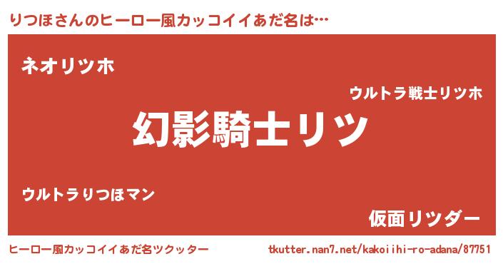 | 男性向けラノベタイトル風あだ名 | 『りつほに滅ぼされるだけの簡単なお仕事です』 |