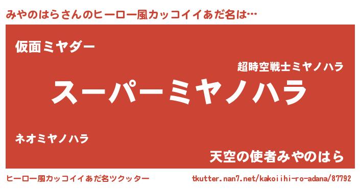 | ヘコむあだ名 | 『みやもー』『みやのはら(笑)』 |