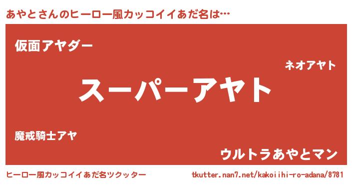 | 胡散臭い通販商品みたいなあだ名 | 『モテモテ間違いなし霊験あらたかなお札…その名も「あやと」』 |