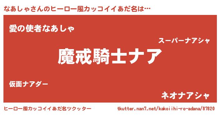 なあしゃさんのヒーロー風カッコイイあだ名をツクッター!