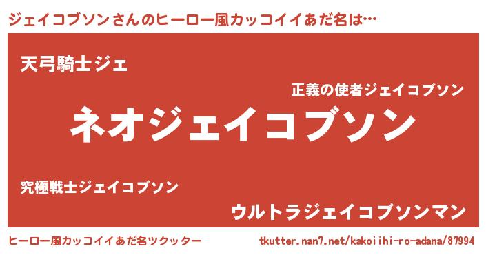 | 意味不明あだ名 | 『永久保存ジェイコブソン』 |