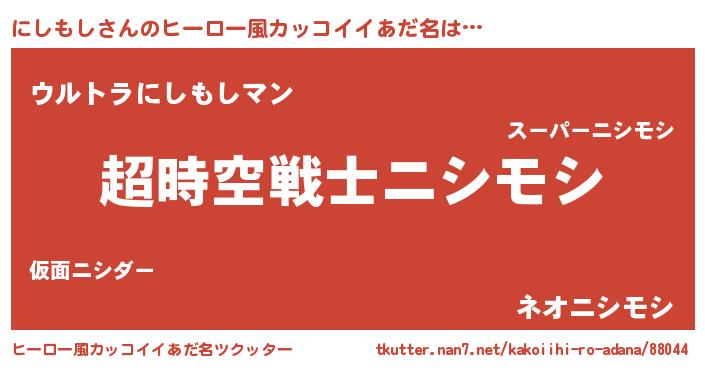 | 男性向けラノベタイトル風あだ名 | 『ニシモシスレイヤー』『にしもしの憂鬱』 |