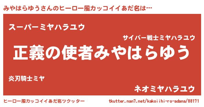 | 胡散臭い通販商品みたいなあだ名 | 『100人中100人が認めたマグネット磁石…その名も「みやはらゆう」』 |
