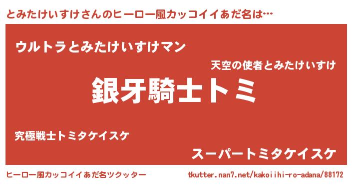 | 男性向けラノベタイトル風あだ名 | 『とみたけいすけの嫁は女の子じゃないと思った?』 |