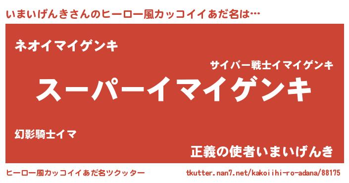 | 男性向けラノベタイトル風あだ名 | 『いまいげんきに滅ぼされるだけの簡単なお仕事です』 |