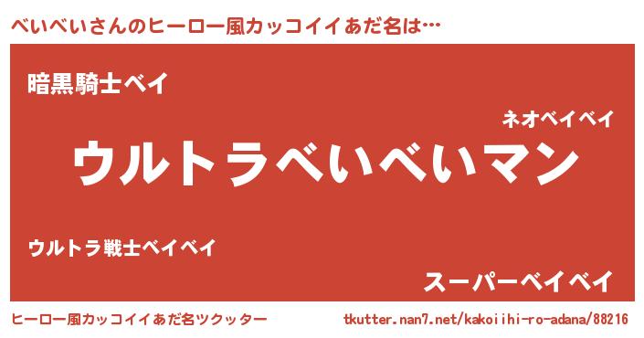 | 男性向けラノベタイトル風あだ名 | 『やはりべいべいの青春ラブコメはまちがっている 』 |
