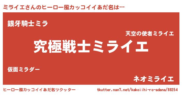 | ヘコむあだ名 | 『ミラお』『ミライエ(爆)』 |