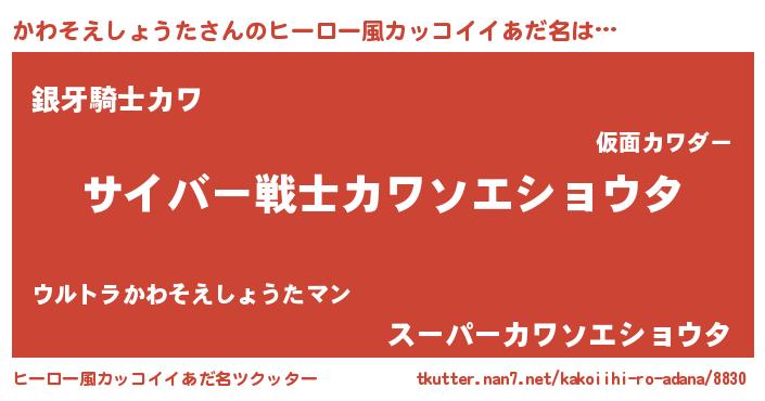 | ポケモン風あだ名 | 『カワセウス』『ヒカワソエショウタ』 |
