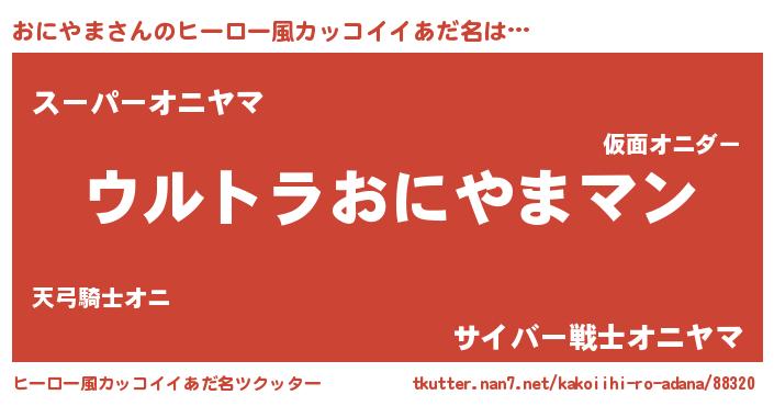| 女子向けラノベタイトル風あだ名 | 『おにやまの玉の輿計画!』 |