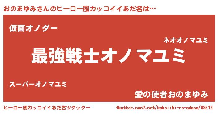 | 男性向けラノベタイトル風あだ名 | 『Re:おのまゆみから始める異世界生活』 |