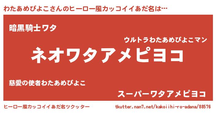| 伝説のあだ名 | 『古文書に記された暗殺者わたあめぴよこ』 |