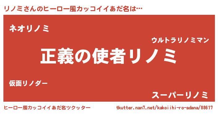| 男性向けラノベタイトル風あだ名 | 『おまえをオタクにしてやるから、俺をリノミにしてくれ! 』 |