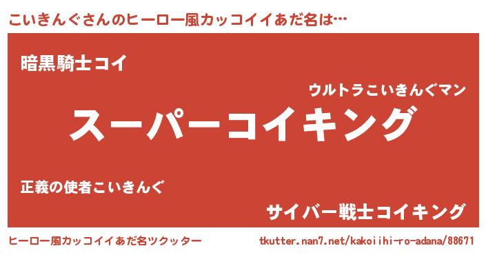 | 男性向けラノベタイトル風あだ名 | 『こいきんぐに滅ぼされるだけの簡単なお仕事です』 |