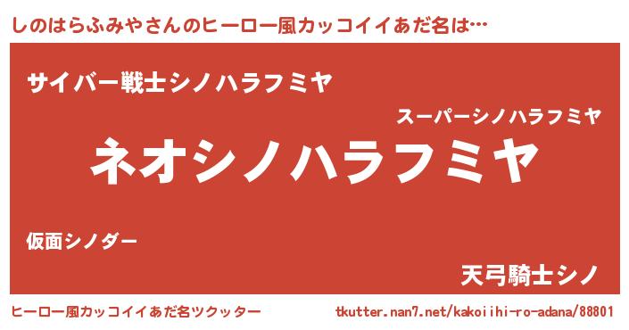 | 男性向けラノベタイトル風あだ名 | 『しのはらふみやという概念が存在しない退屈な世界 』 |