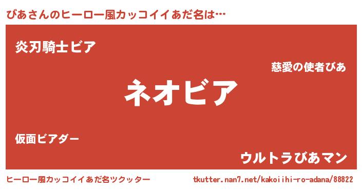 | 意味不明あだ名 | 『永久保存びあ』『とにかく怪しいびあ』 |