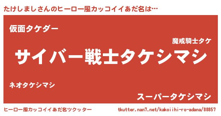 | 男性向けラノベタイトル風あだ名 | 『Re:たけしましから始める異世界生活』 |