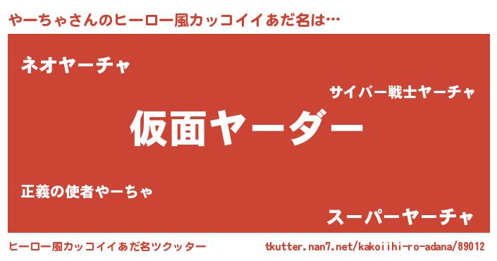 | 意味不明あだ名 | 『住所不定無職やーちゃ(7歳)』 |