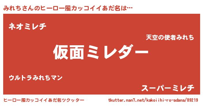 | 意味不明あだ名 | 『住所不定無職みれち(71歳)』 |