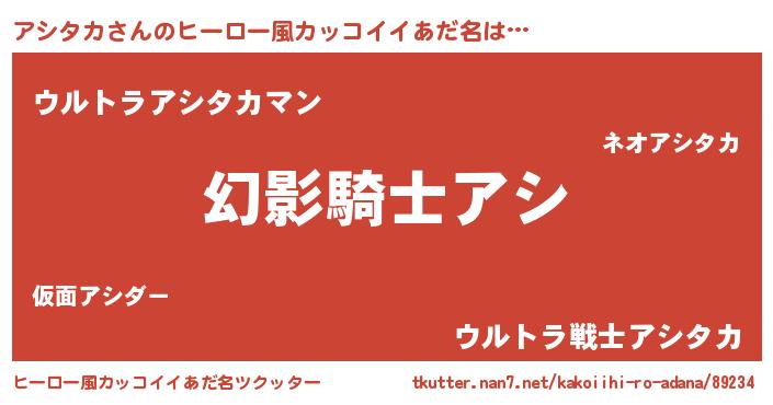 | 意味不明あだ名 | 『とにかく怪しいアシタカ』 |