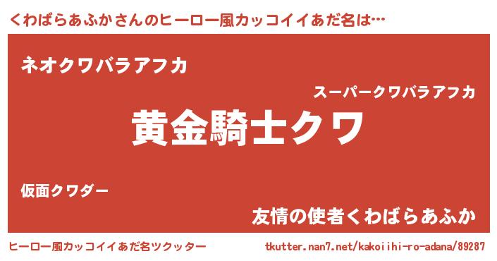 | ヘコむあだ名 | 『くわっちょ』『くわばらあふか(爆)』 |