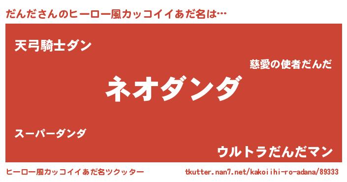 | 男性向けラノベタイトル風あだ名 | 『だんだに滅ぼされるだけの簡単なお仕事です』 |