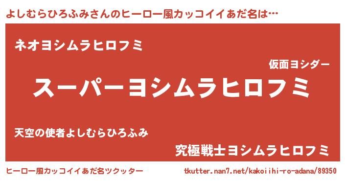 | 男性向けラノベタイトル風あだ名 | 『ヨシムラヒロフミアートオンライン』 |