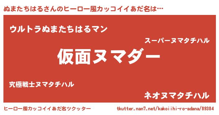 | 男性向けラノベタイトル風あだ名 | 『魔弾の王とぬまたちはる』 |